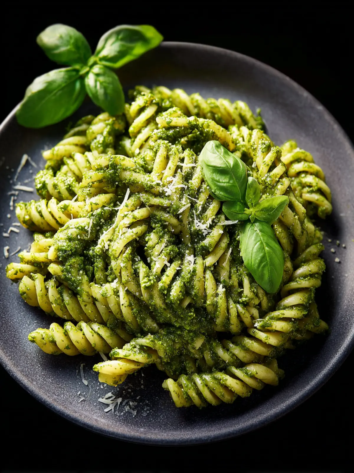 A delicious pasta dish made with fresh basil pesto.