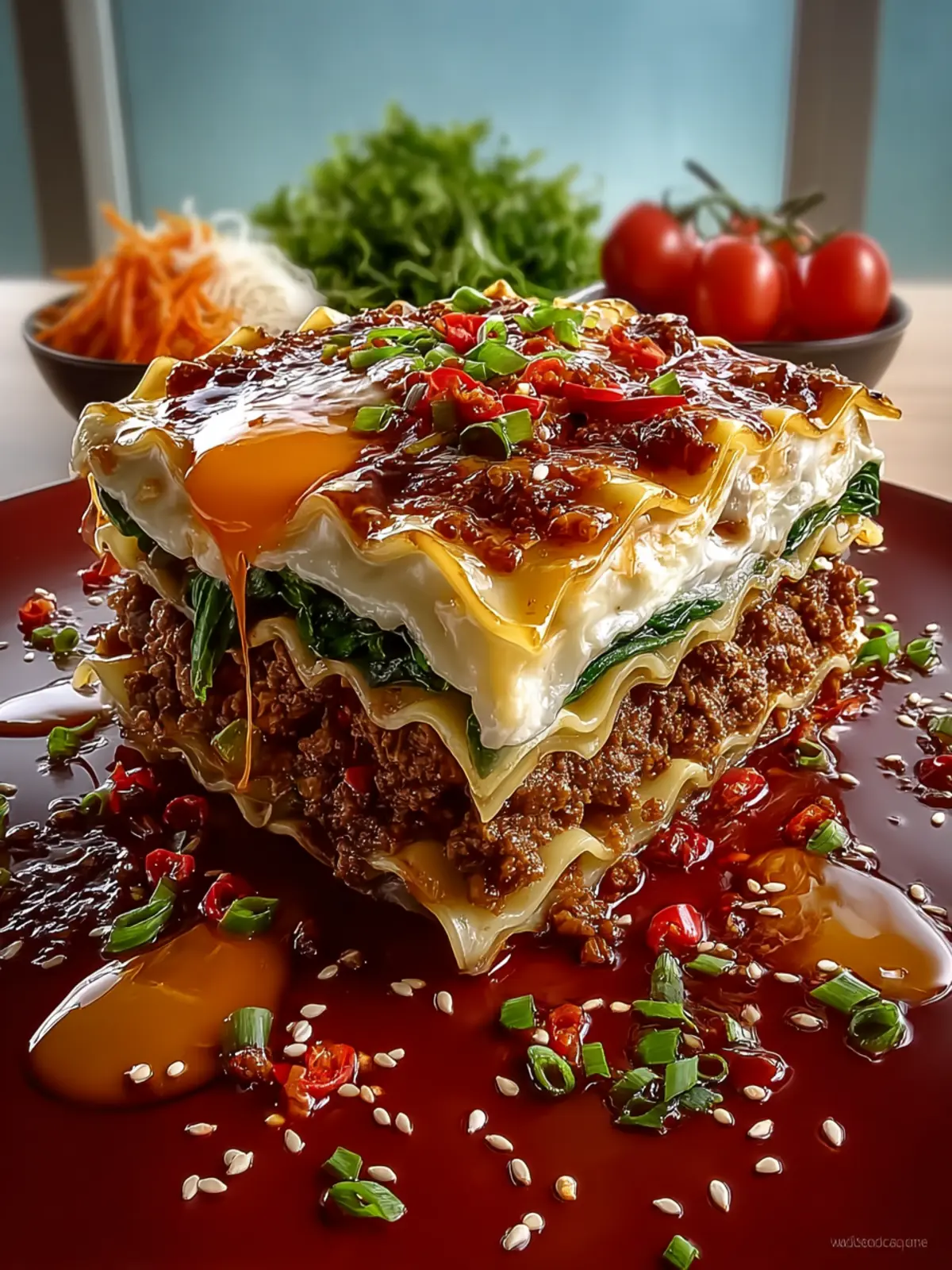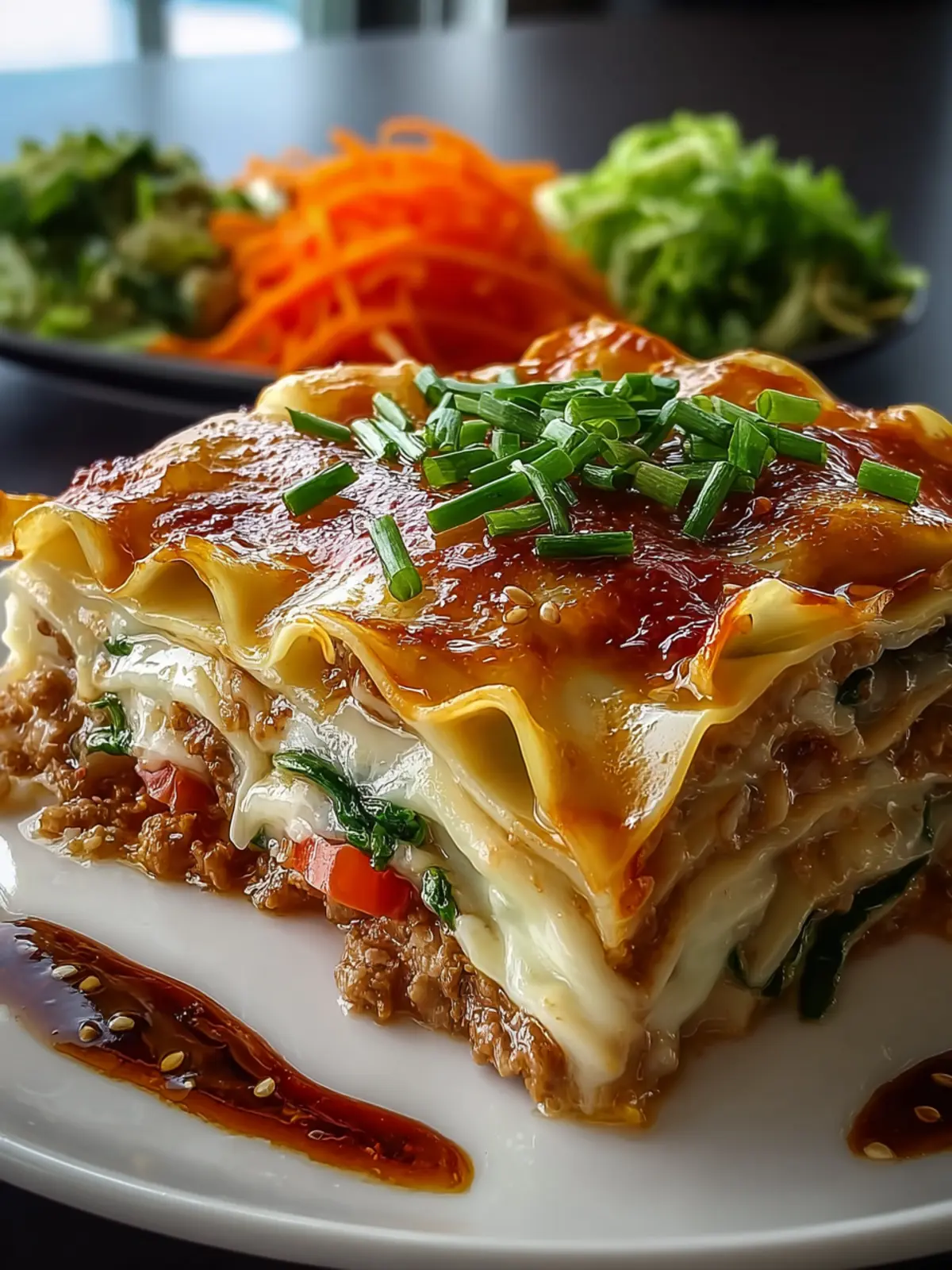 Sauce: A savory sauce made with soy sauce, sesame oil, and garlic is essential for binding all the flavors together. The balance of umami is what gives the lasagna its authentic Asian flair.