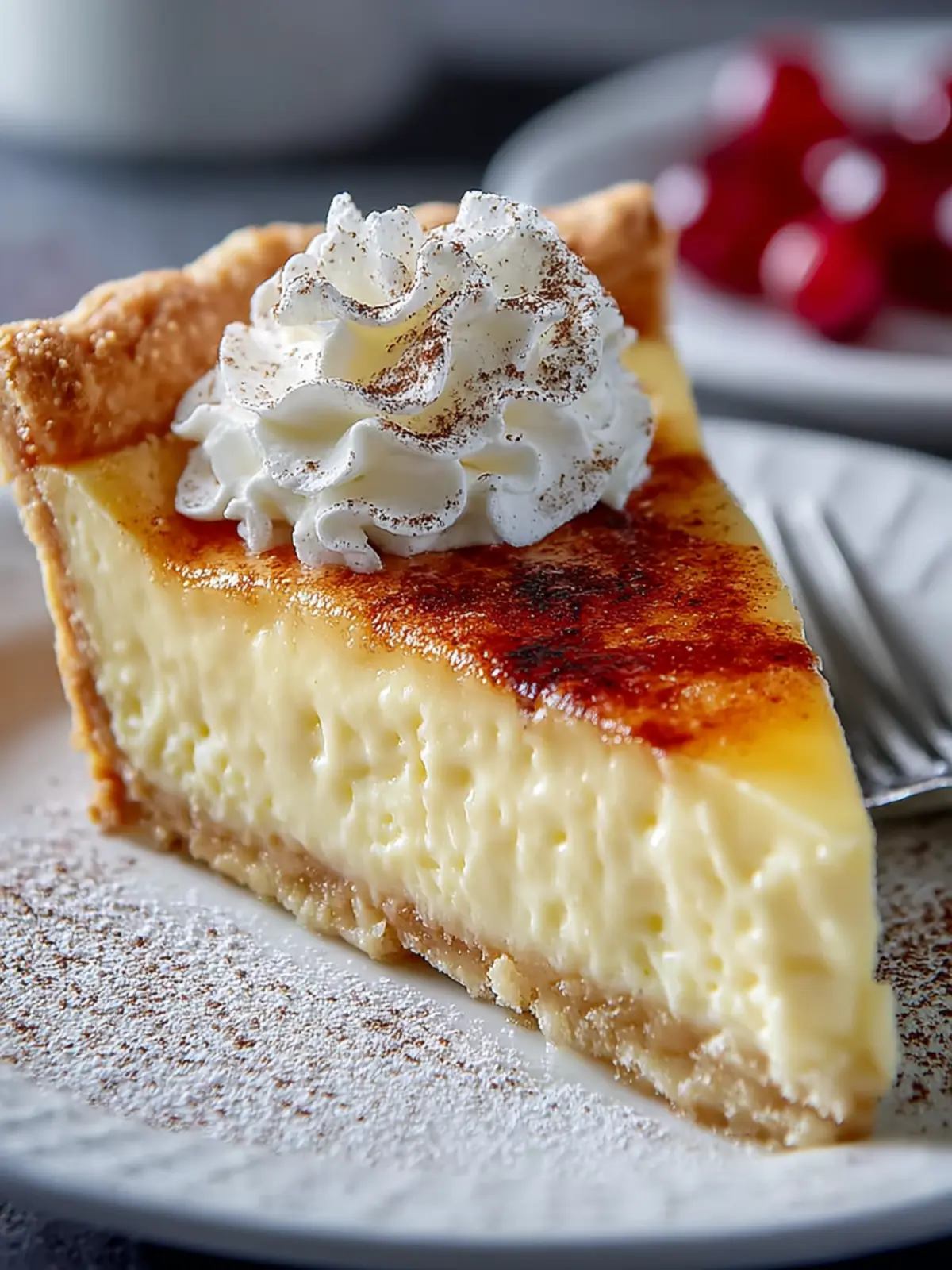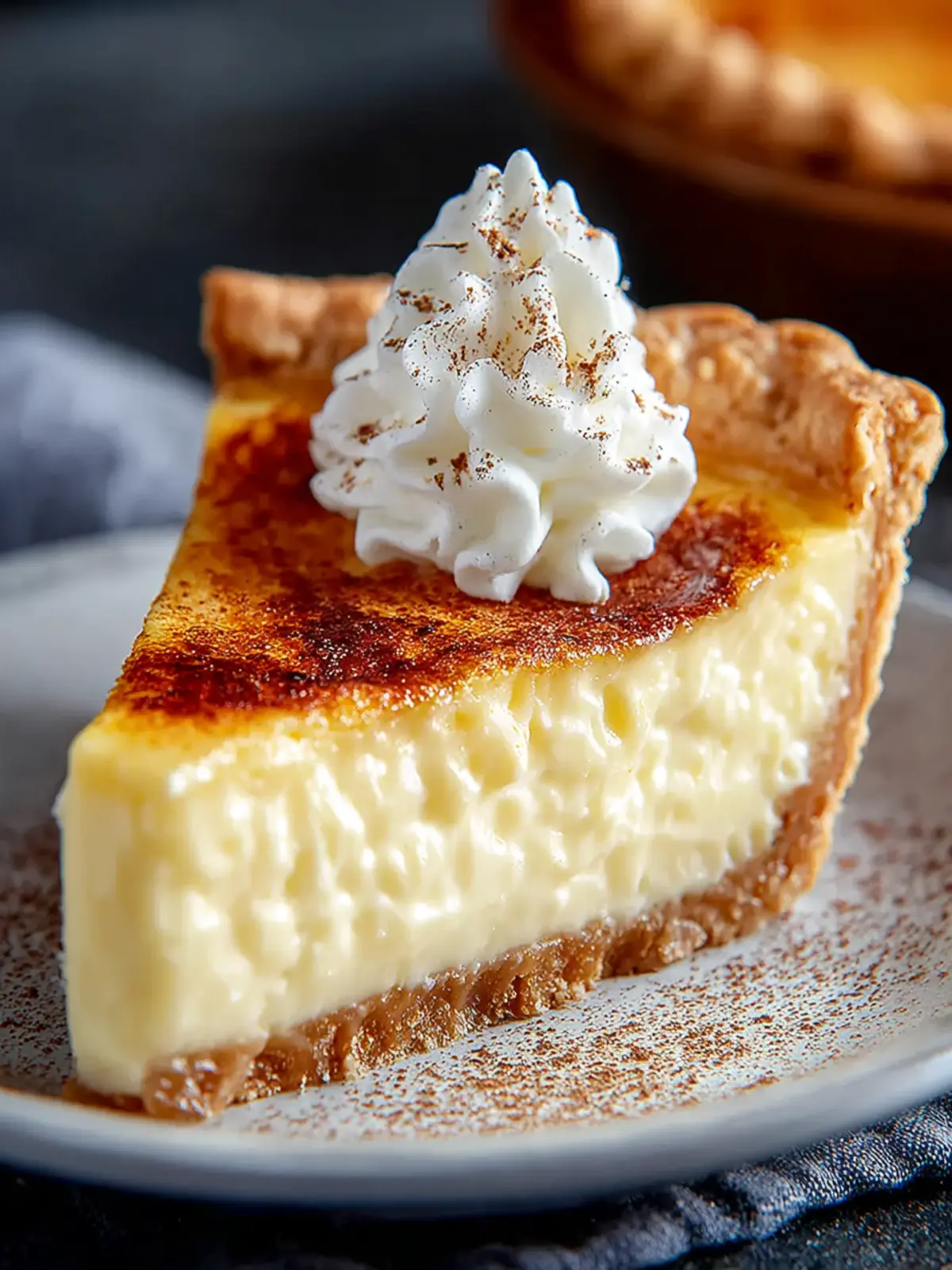 A delicious custard pie made with a flaky crust and a creamy filling.