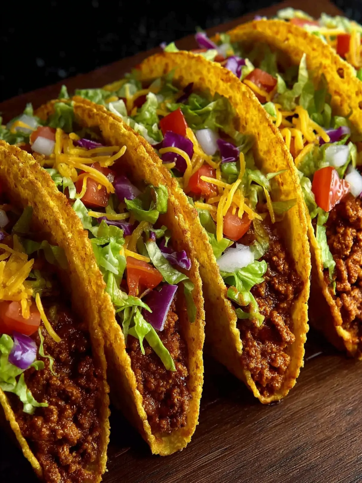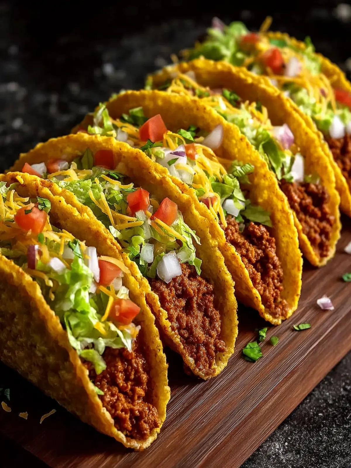 Delicious homemade tacos filled with seasoned ground beef and topped with your favorite ingredients.