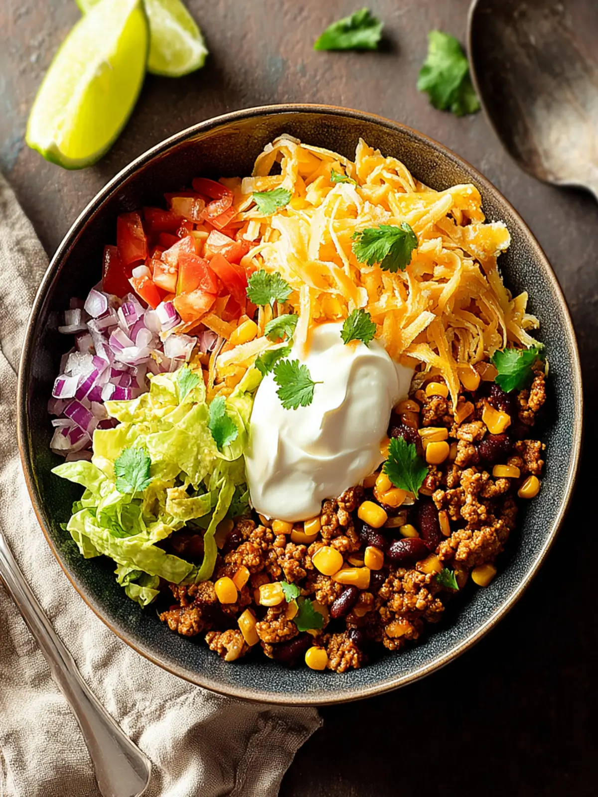 Toppings: Think avocado, cilantro, and lime juice. These ingredients are not just garnish; they add an explosion of flavor and freshness that elevates your taco bowl to new heights.