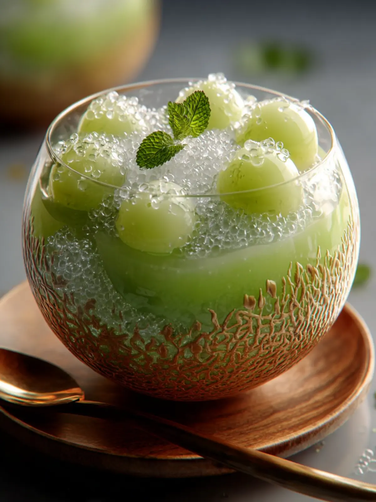 A refreshing dessert made with honeydew melon and sago pearls, perfect for warm days.