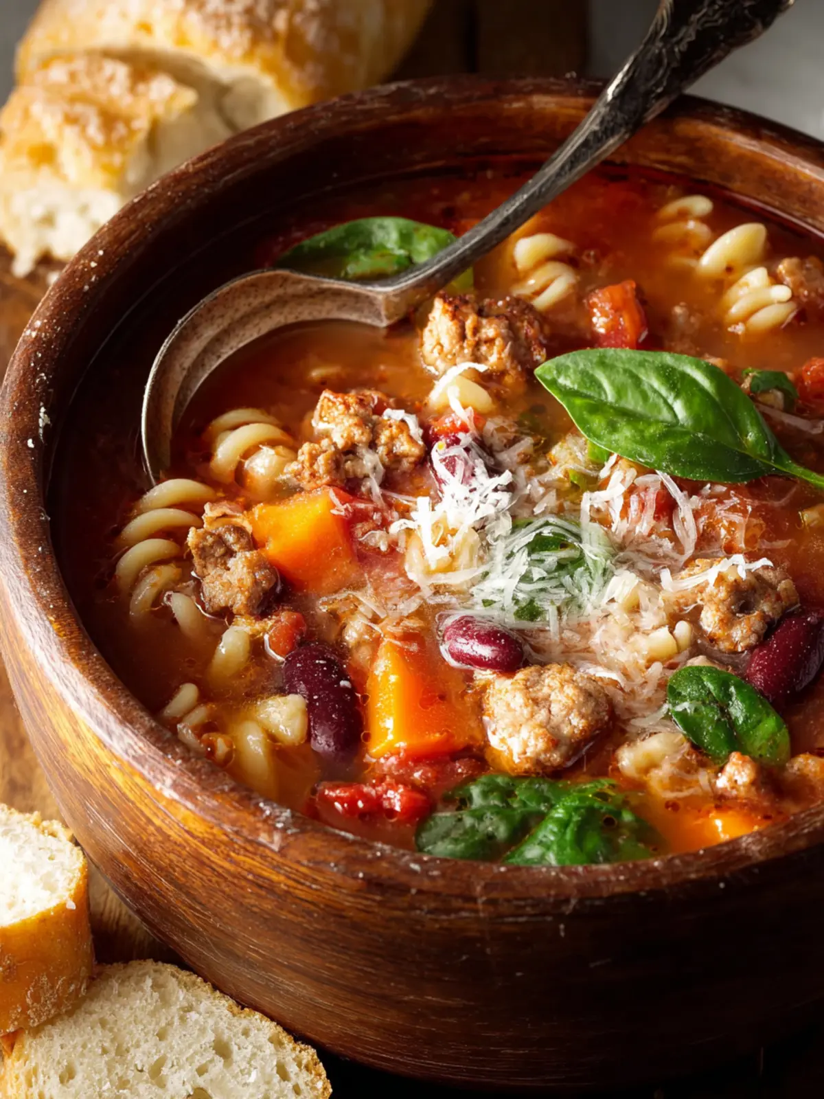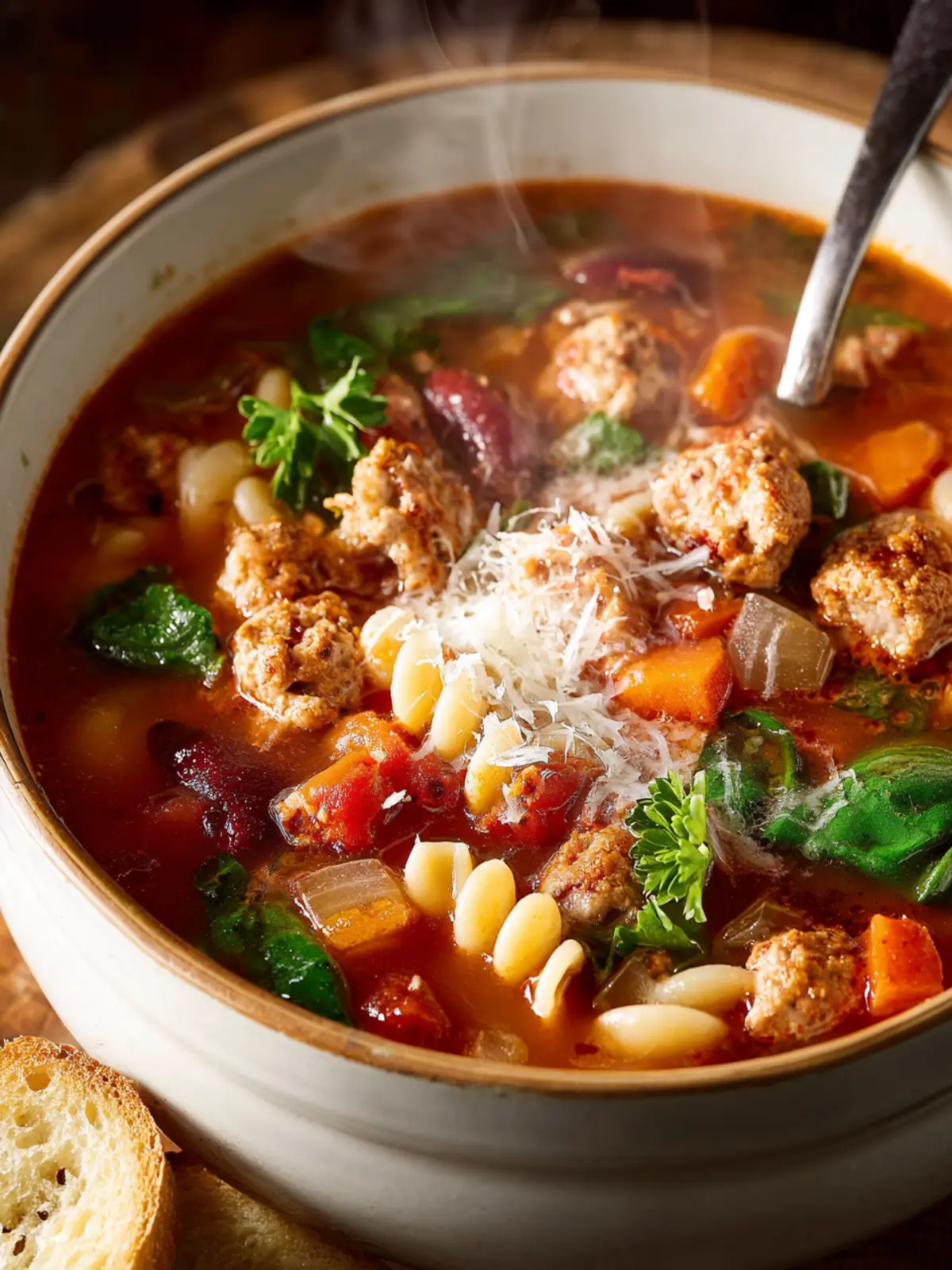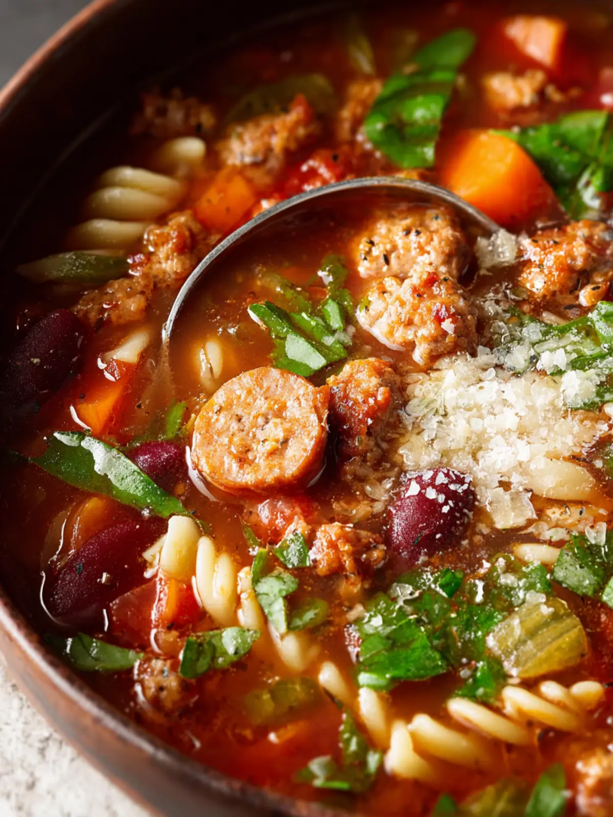 Nourishing Ingredients: Made with savory Italian sausage, fresh vegetables, and aromatic herbs, this soup is filled with nutrients and flavors that nourish both body and soul. It’s the balance of these robust ingredients that makes each serving comforting and satisfying.