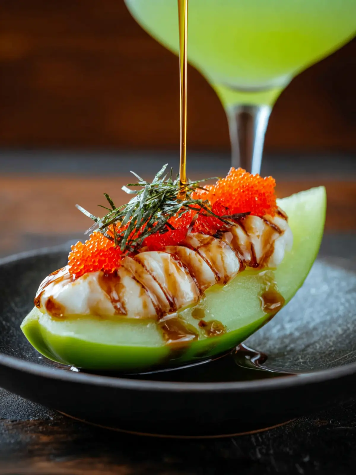 Light Appetizers: Think sushi rolls or fresh spring rolls. The refreshing notes of melon liqueur and the citrusy undertones of the Japanese Slipper complement seafood beautifully.