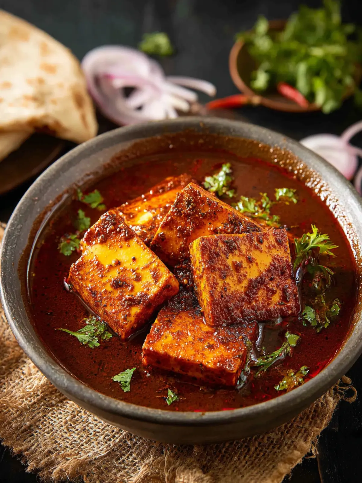 When you first take a bite of Kashmiri Laal Paneer, the vivid red color, thanks to the warming Kashmiri chili, immediately catches your eye. This isn’t just a feast for the eyes; the aromatic blend of spices brings a depth of flavor that lingers on your palate.
