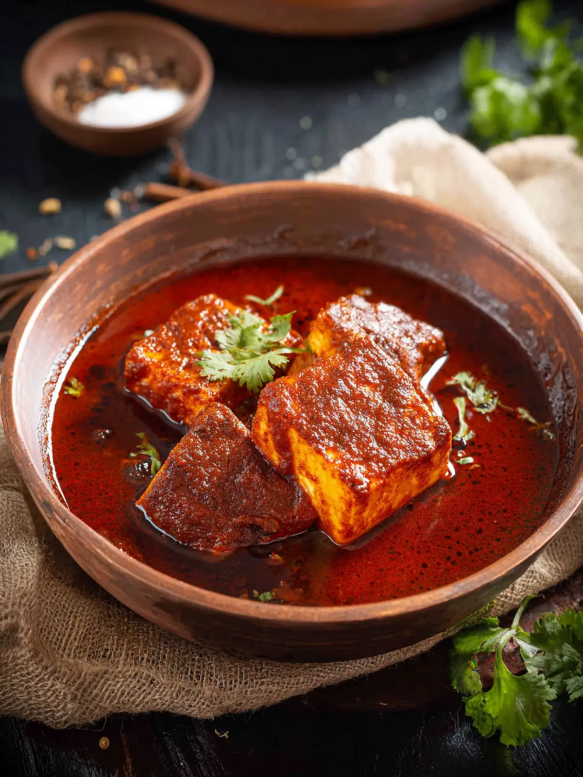 The main star of your Kashmiri Laal Paneer is the paneer itself. Fresh, homemade paneer delivers a creamier texture and absorbs spices beautifully. If you opt for store-bought, ensure it’s high-quality. Softness is key — it should not crumble easily.