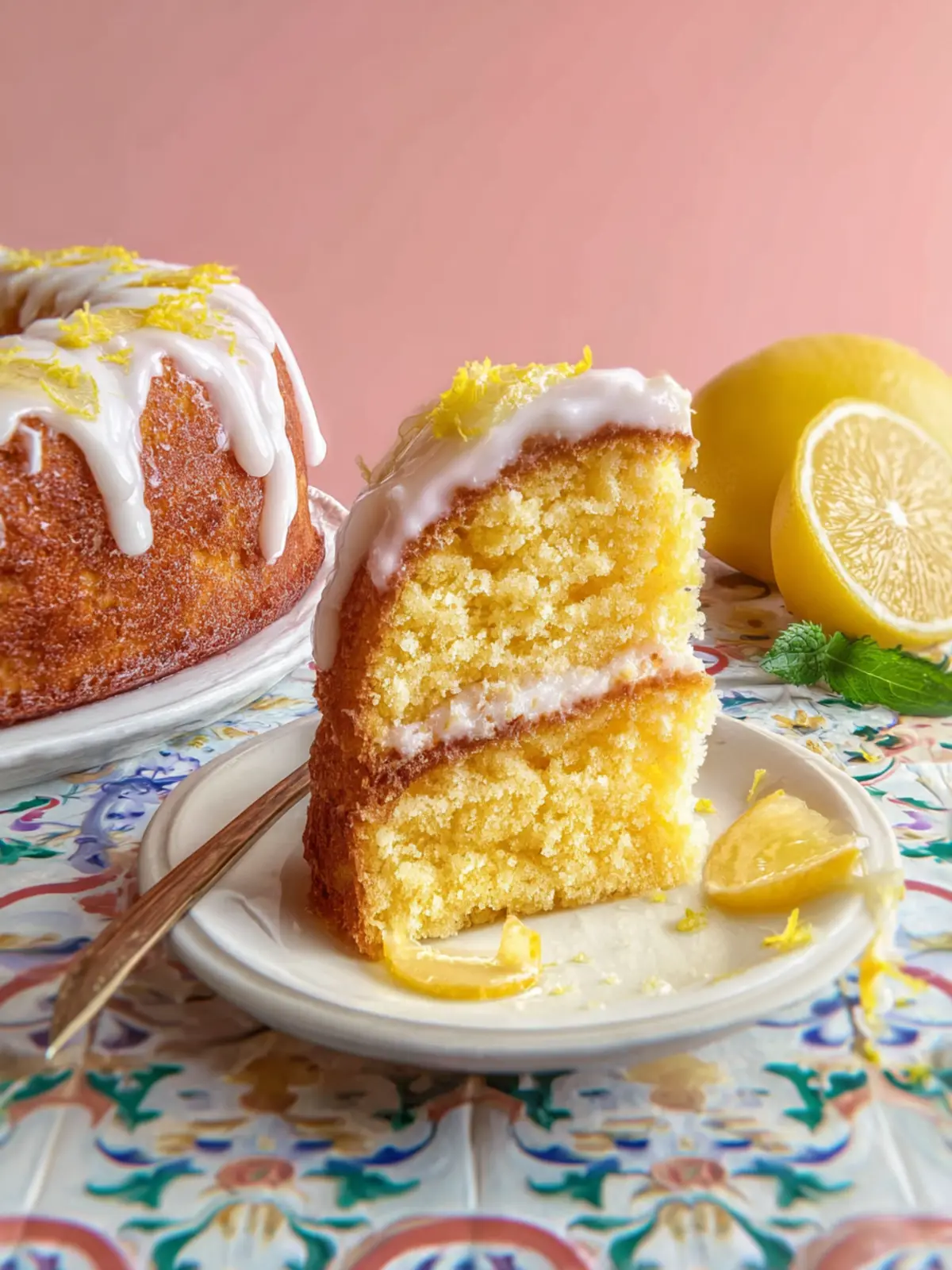This moist lemon bundt cake is perfect for any occasion, topped with a delicious lemon glaze that adds a sweet, tangy flavor.