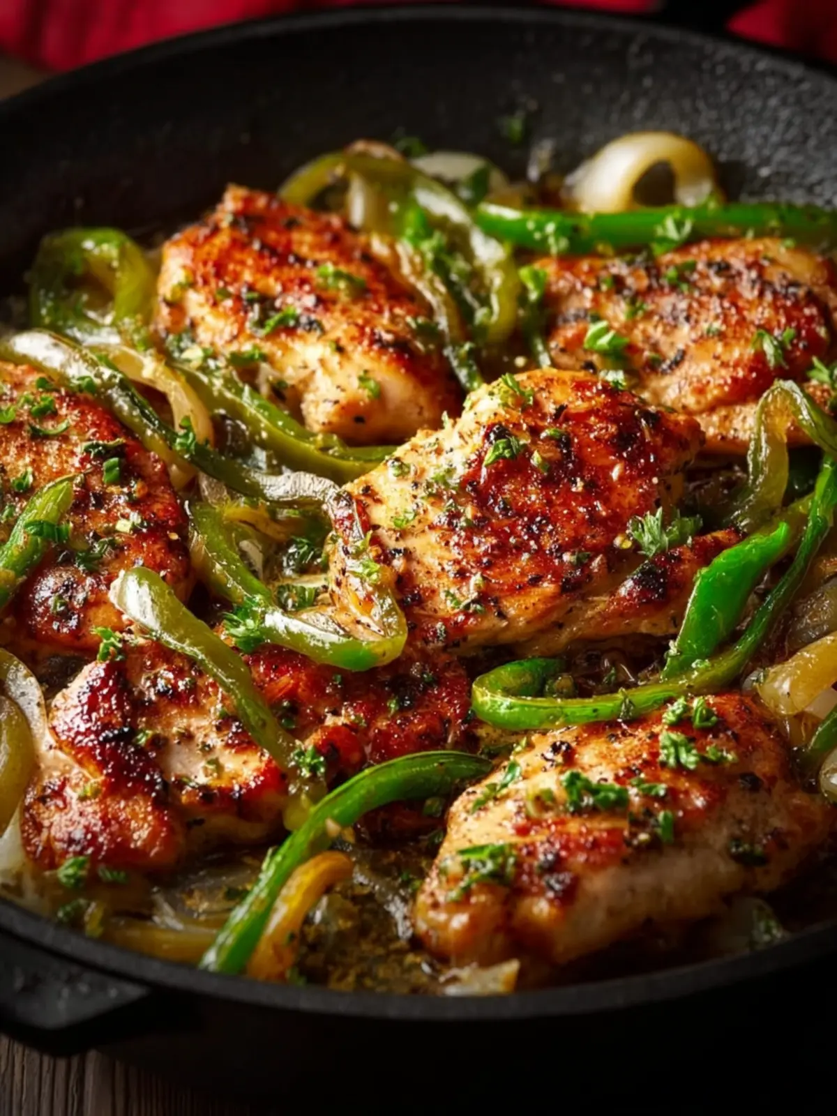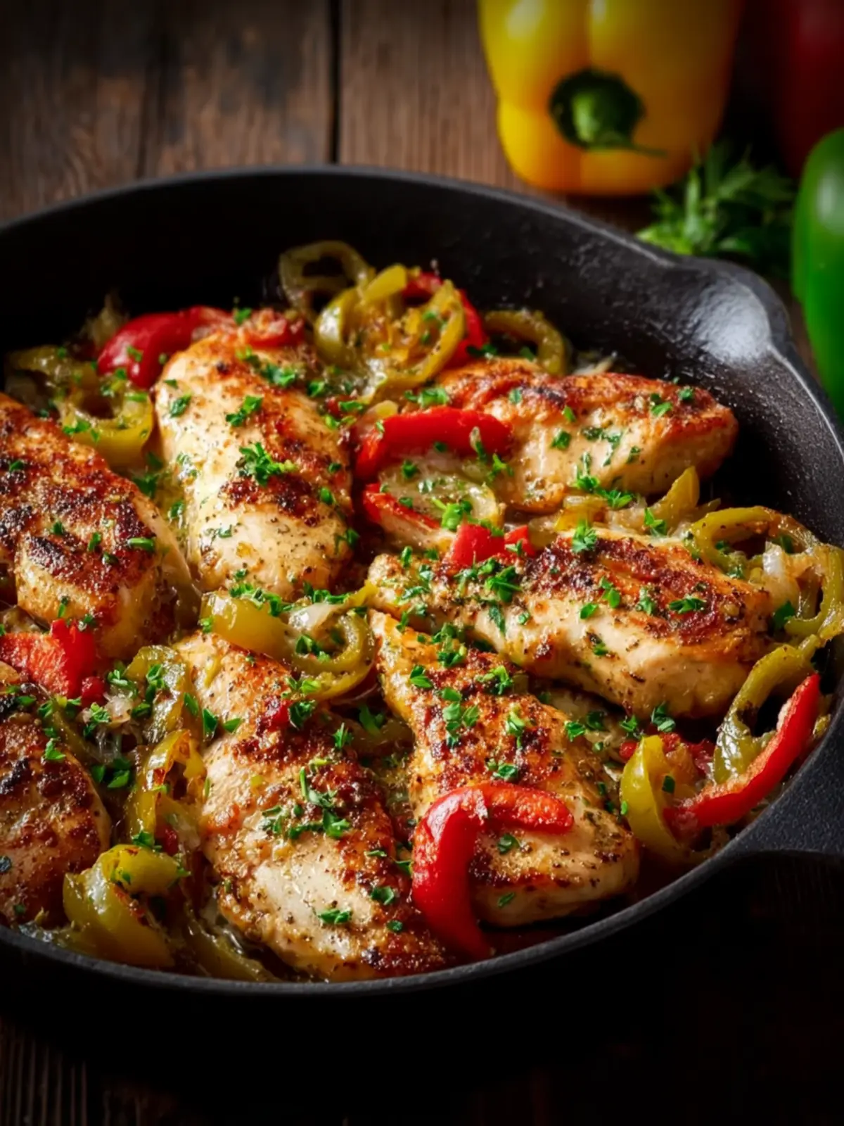 - Finish Cooking the Chicken – Return the chicken to the skillet. Spoon some of the sauce and peppers over the top. Reduce heat to medium-low and let everything simmer for about 10 minutes, until the chicken is fully cooked and tender.