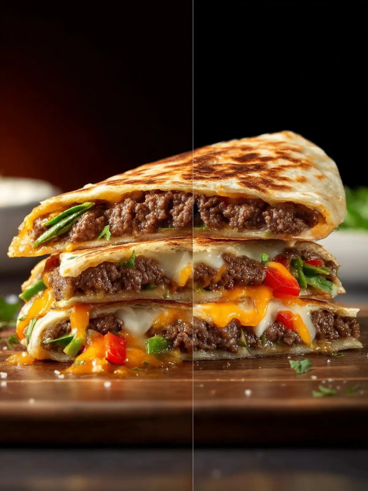 Flour tortillas: The perfect vessel for holding all the deliciousness together. Unlike regular burger buns, flour tortillas crisp up nicely when cooked, adding a satisfying crunch while still being soft enough to bite into. They cradle all the goodness inside without falling apart, making them simply ideal for a quesadilla burger.